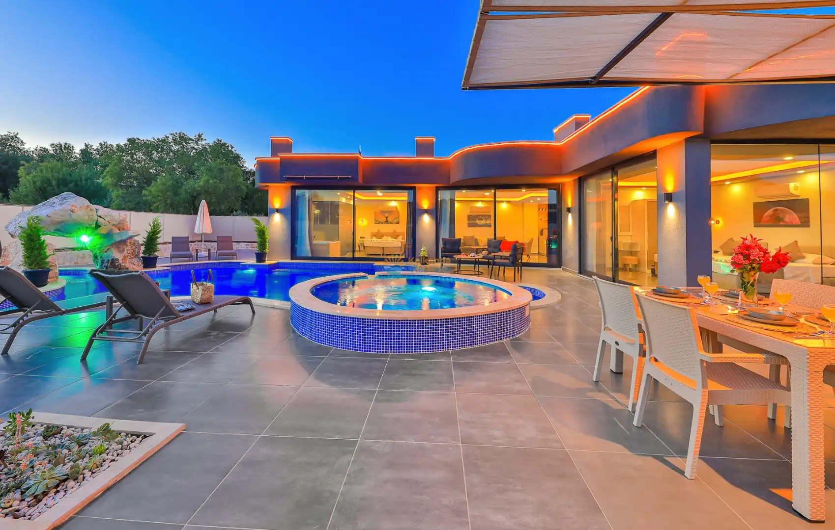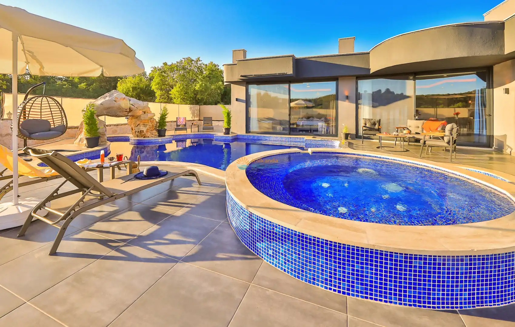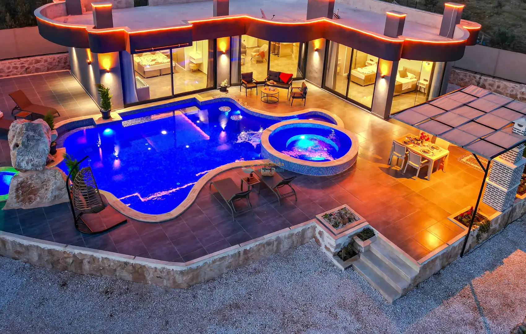 Villa Agartra, 2 yatak odalı olup 4 kişilik konaklama kapasitesine sahiptir. İçerisinde çocuk havuzu,ve jakuzi bulunmaktadır.