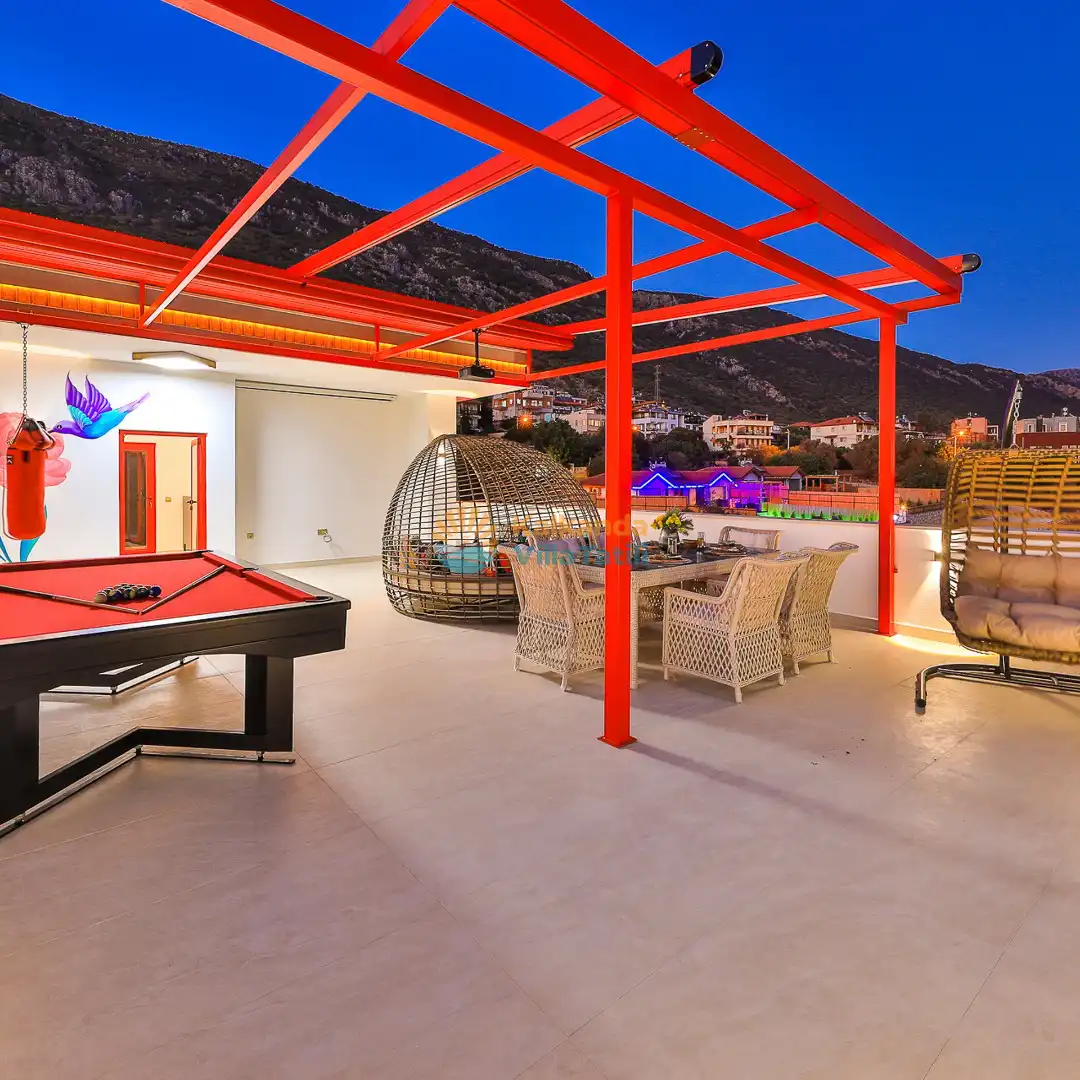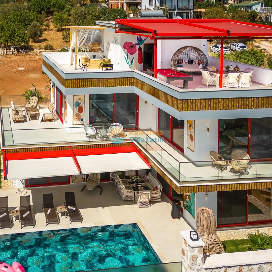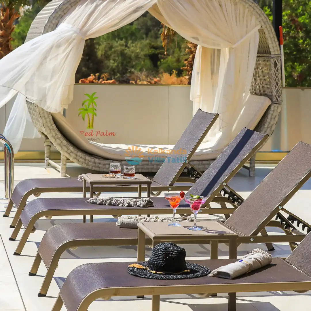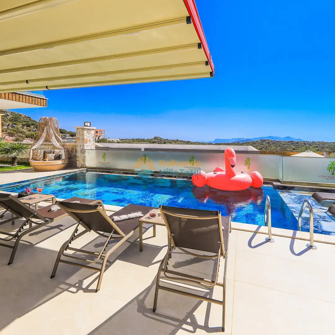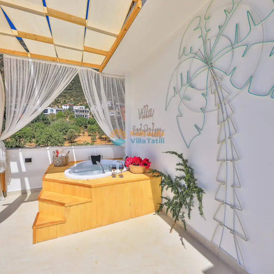 Villa Red Palm , Antalya Kaş bölgesinin Gökseki Mevkiinde bulunmaktadır.Doğa ve Deniz Manzaralı olup , 3 katındada ayrı bir konforla müşterilerimize  en iyi konforu sağlamaktadır. 6 Kişi kapasiteli olup 3 banyo 3 yatak odası mevcuttur . Geniş aileler için özenle tasarlanmıştır . Kiralık villamızın içersinde (masa tenisi, bilardo masası,  jakuzi, ,spor aletleri, sinema sistemi) bulunmaktadır.