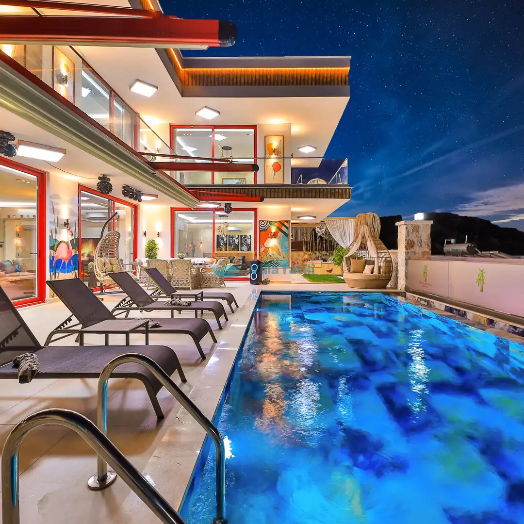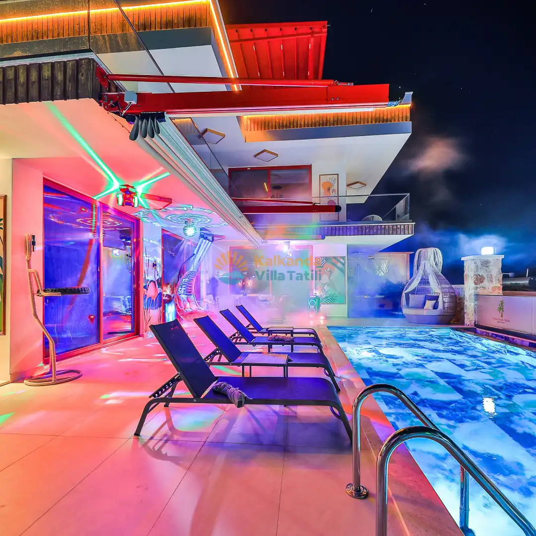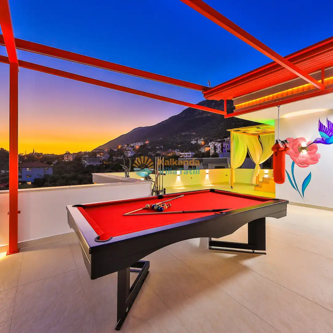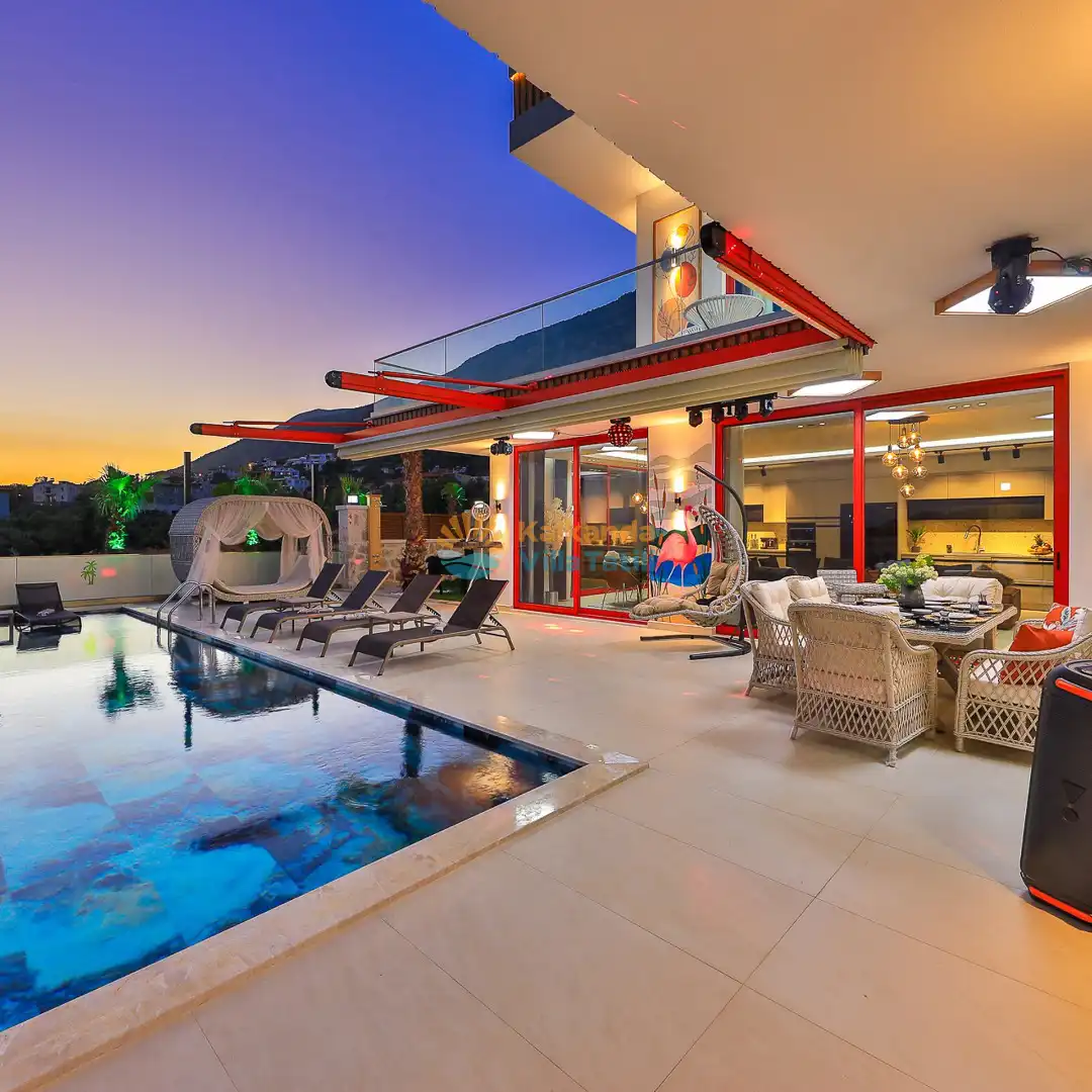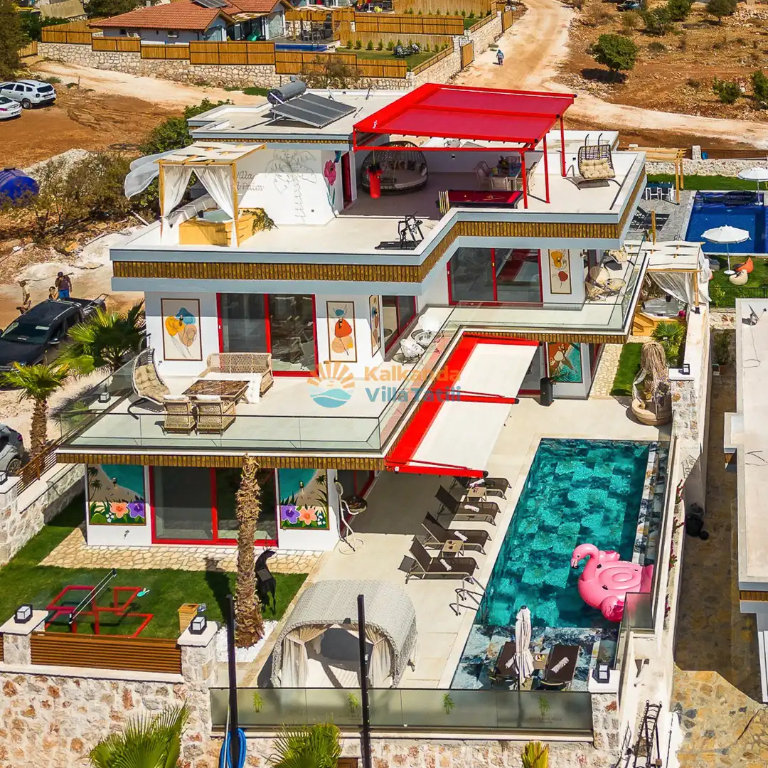 Villa Red Palm , Antalya Kaş bölgesinin Gökseki Mevkiinde bulunmaktadır.Doğa ve Deniz Manzaralı olup , 3 katındada ayrı bir konforla müşterilerimize  en iyi konforu sağlamaktadır. 6 Kişi kapasiteli olup 3 banyo 3 yatak odası mevcuttur . Geniş aileler için özenle tasarlanmıştır . Kiralık villamızın içersinde (masa tenisi, bilardo masası,  jakuzi, ,spor aletleri, sinema sistemi) bulunmaktadır.