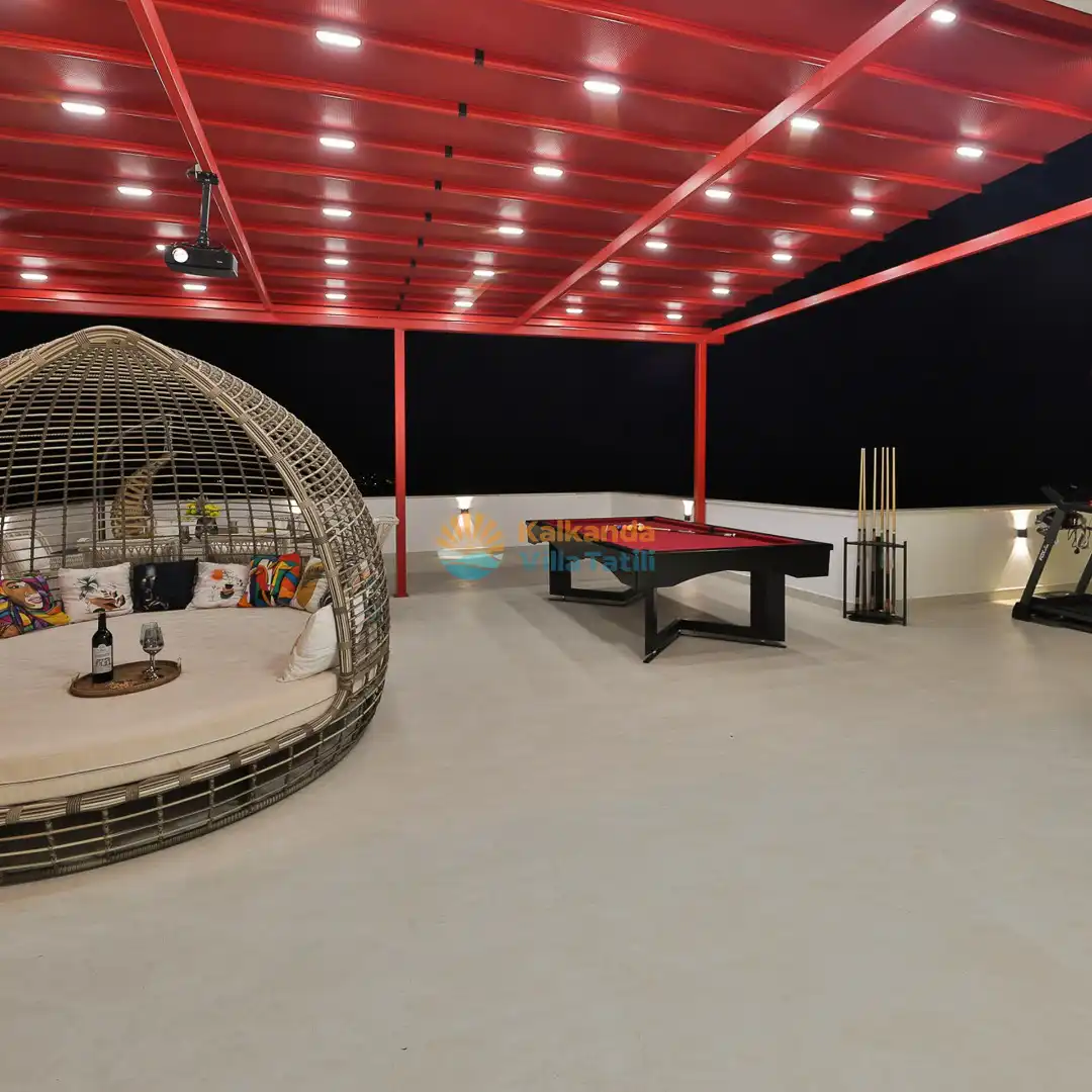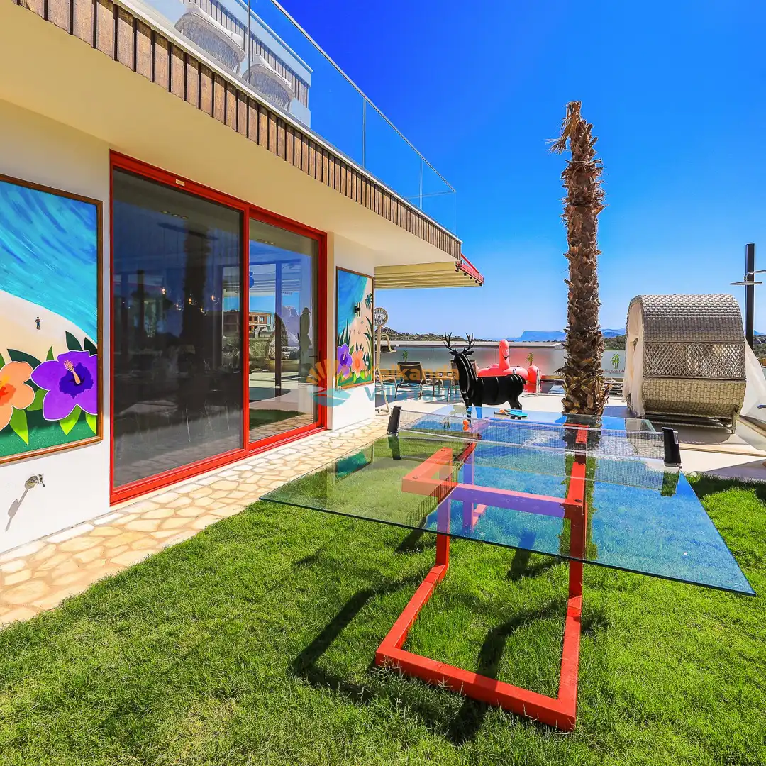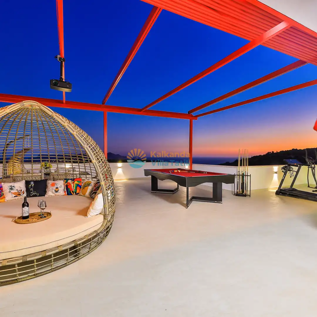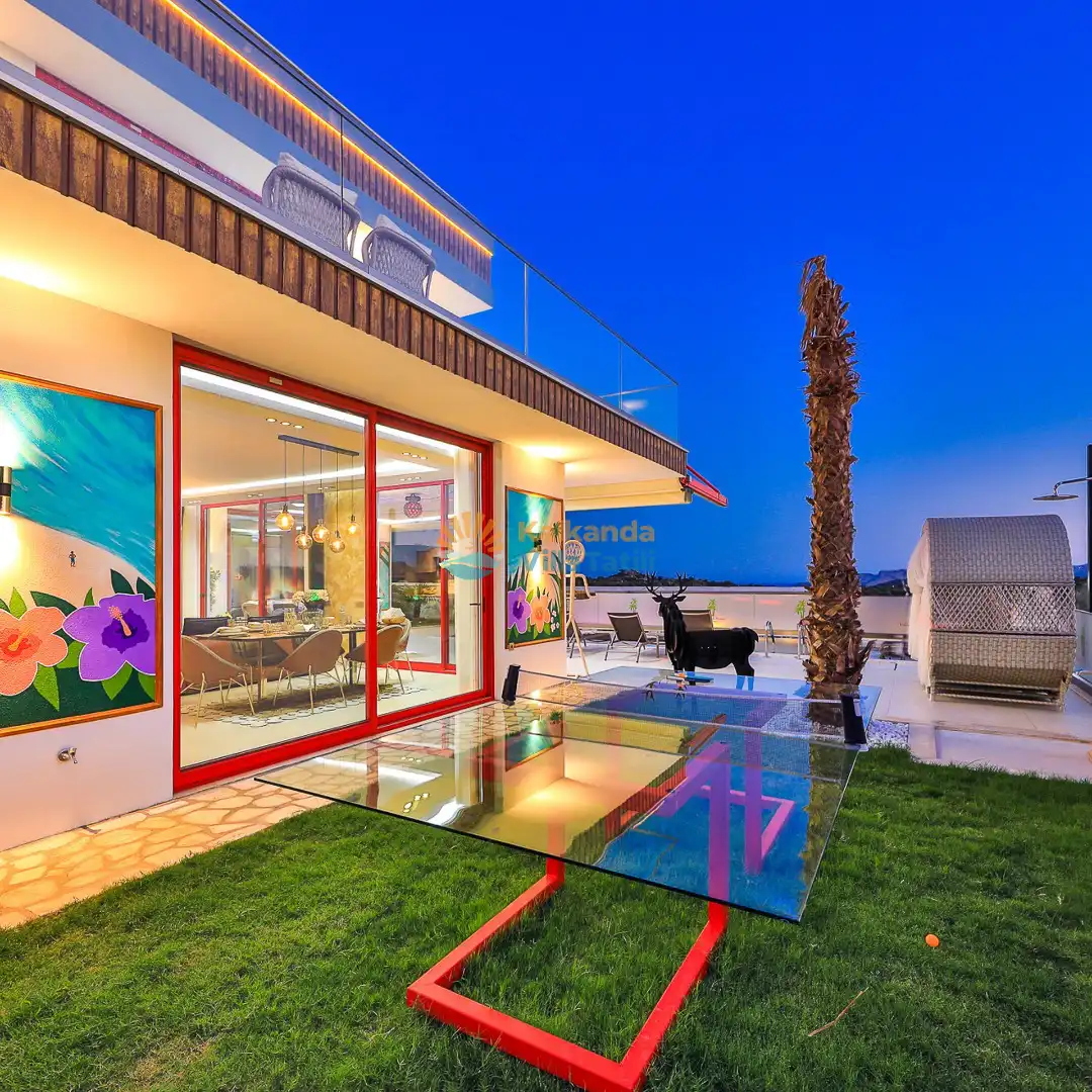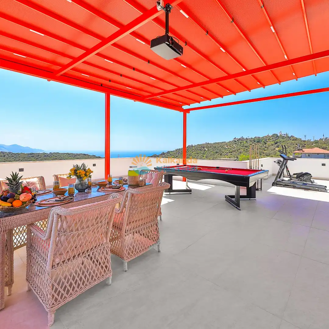 Villa Red Palm , Antalya Kaş bölgesinin Gökseki Mevkiinde bulunmaktadır.Doğa ve Deniz Manzaralı olup , 3 katındada ayrı bir konforla müşterilerimize  en iyi konforu sağlamaktadır. 6 Kişi kapasiteli olup 3 banyo 3 yatak odası mevcuttur . Geniş aileler için özenle tasarlanmıştır . Kiralık villamızın içersinde (masa tenisi, bilardo masası,  jakuzi, ,spor aletleri, sinema sistemi) bulunmaktadır.
