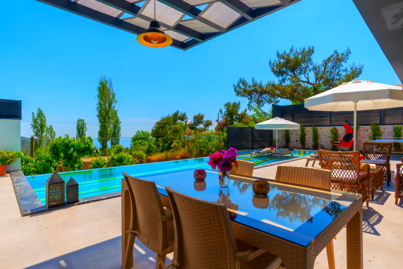 NOT: Doğa içinde konumlanmış villalarımızın çevresinde gerekli ilaçlamalar yapılmaktadır. Buna rağmen kelebek, böcek, sinek vs çıkma ihtimali vardır.